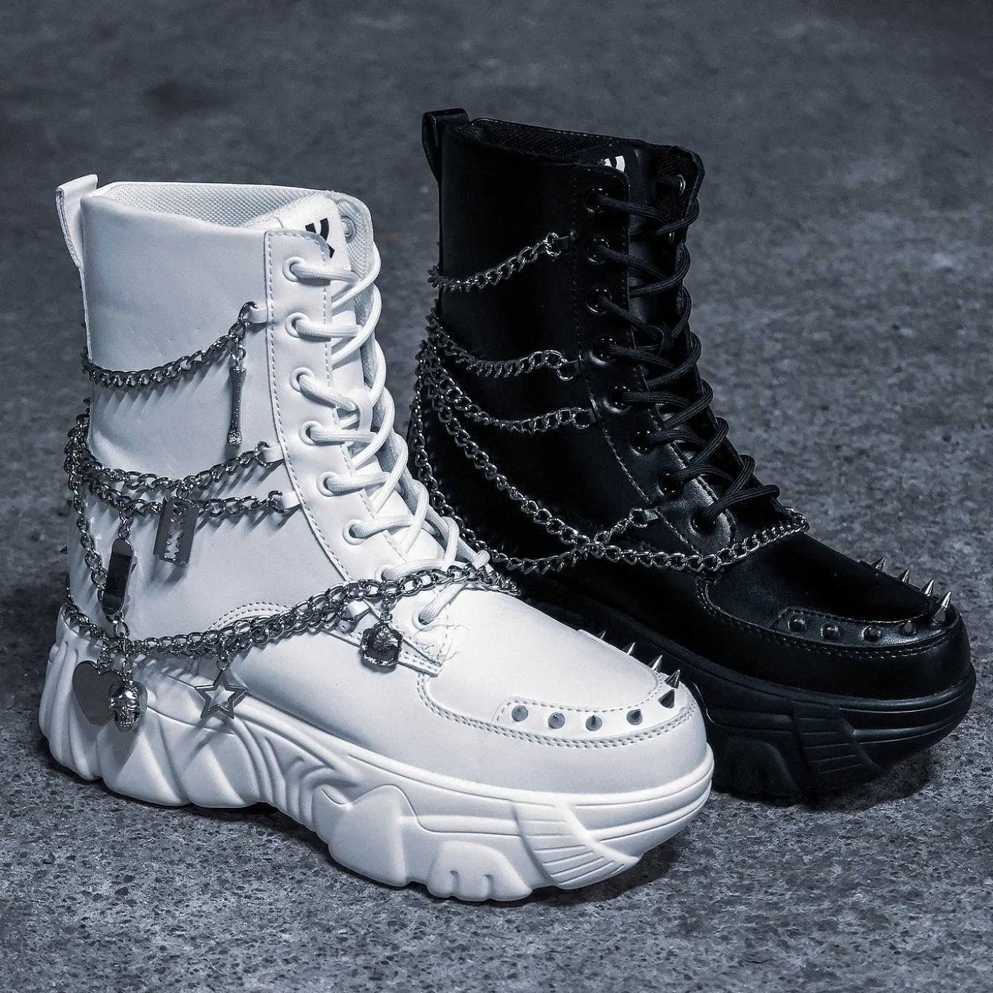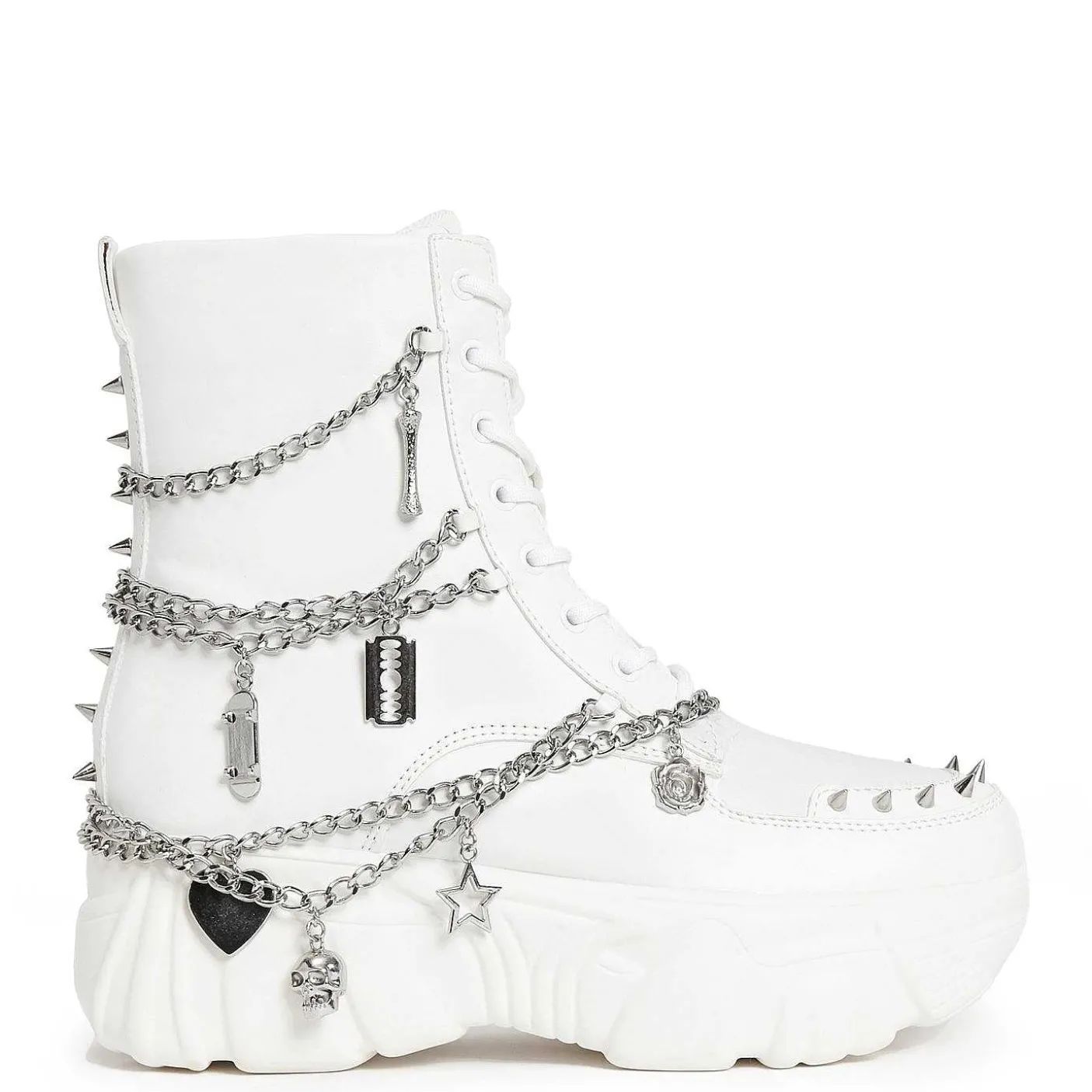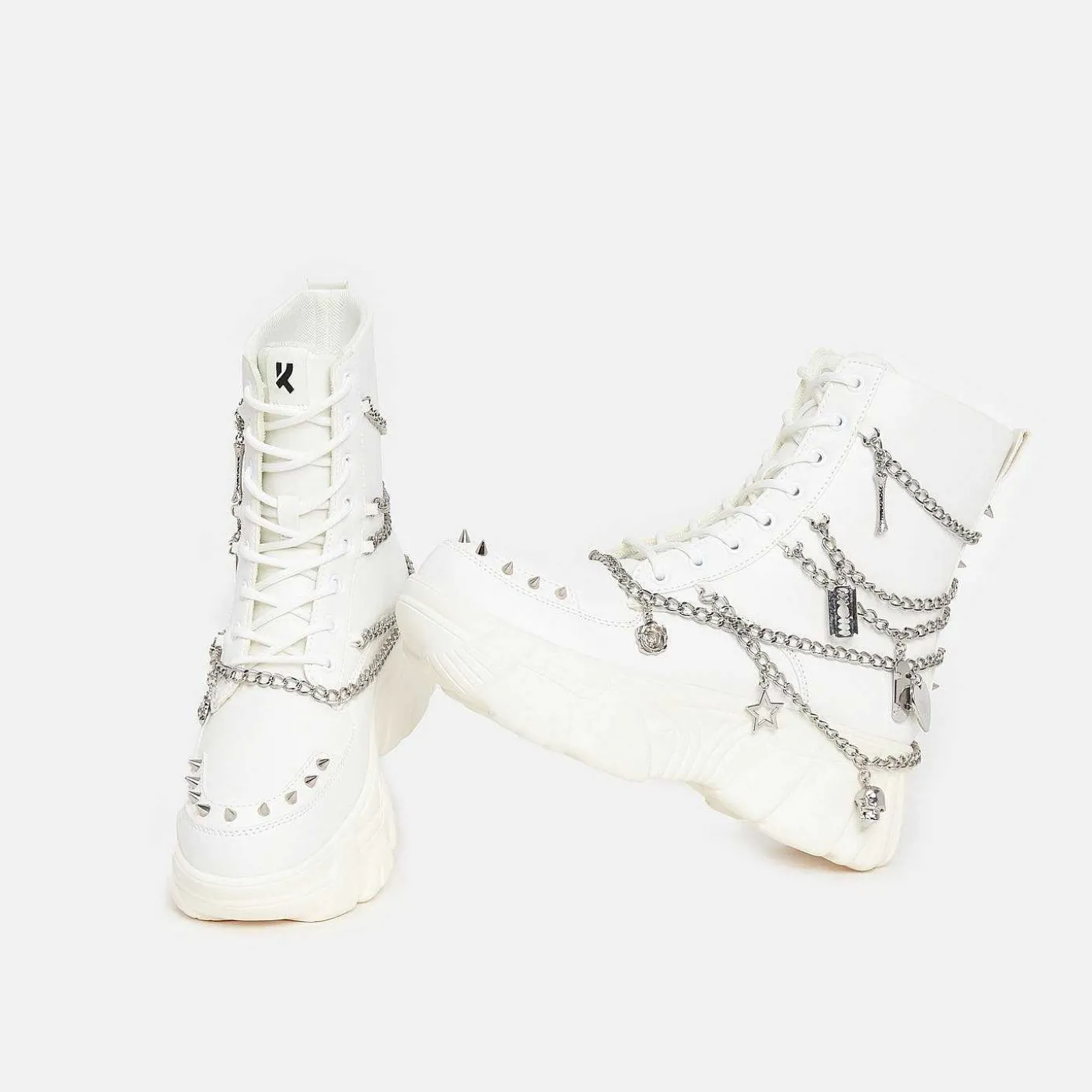 Koi Zamienił Ulubione Białe, Masywne Buty Sportowe Jinx W Białe, Grube Buty, Dzięki Którym Przygotujesz Się Na Zimę! Te Buty Na Platformie Dodadzą Blasku Twoim Stylizacjom I Są Wyposażone W Srebrne Ćwieki, Łańcuszki I Zawieszki. Dzięki Wygodzie Tenisówek I Chłodowi Masywnych Butów, Te Dadzą Ci To, Co Najlepsze Z Obu Światów. Jak Zawsze, Ci Bad Boys Są W 100% Wegańscy.