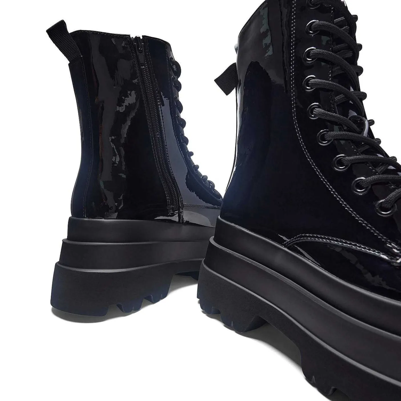 Zawsze Jest Miejsce Na Więcej Butów Na Platformie! Te Patentowe Buty Są Sznurowane I Mają Mega Platformę. Gdy Już Znajdziesz Idealną Parę Czarnych Grubych Butów, Już Nigdy Ich Nie Zdejmiesz – Niezależnie Od Tego, Czy Ubierzesz Się Warstwowo Na Przytulny Zimowy Spacer, Będziesz Czuć Się Komfortowo Podczas Weekendowych Drinków, Czy Też Pokażesz Swoją Punkową Stronę. Grube Botki To Twój