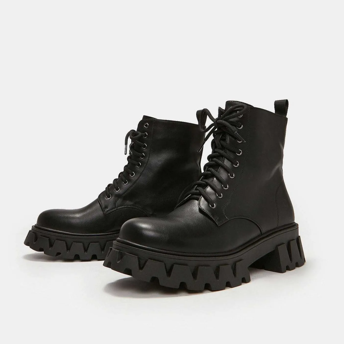 Klasyczny Element Garderoby W Każdej Szafie Gotyckiej… A Właściwie W Każdej Szafie. Te Czarne Botki Ze Skóry Wegańskiej Mają Grubą Podeszwę, Która Sprawi, Że Będziesz Gotowy Na Ucieczkę Przed Przyćmionym Cieniem. On Zawsze Za Tobą Podąża, Więc To Jest Twój Znak, Dzięki Któremu Zawsze Będziesz Mieć Pod Ręką Masywne Buty Z Obuwiem Koi… Nigdy Nie Wiesz, Kiedy Mogą Się Przydać.